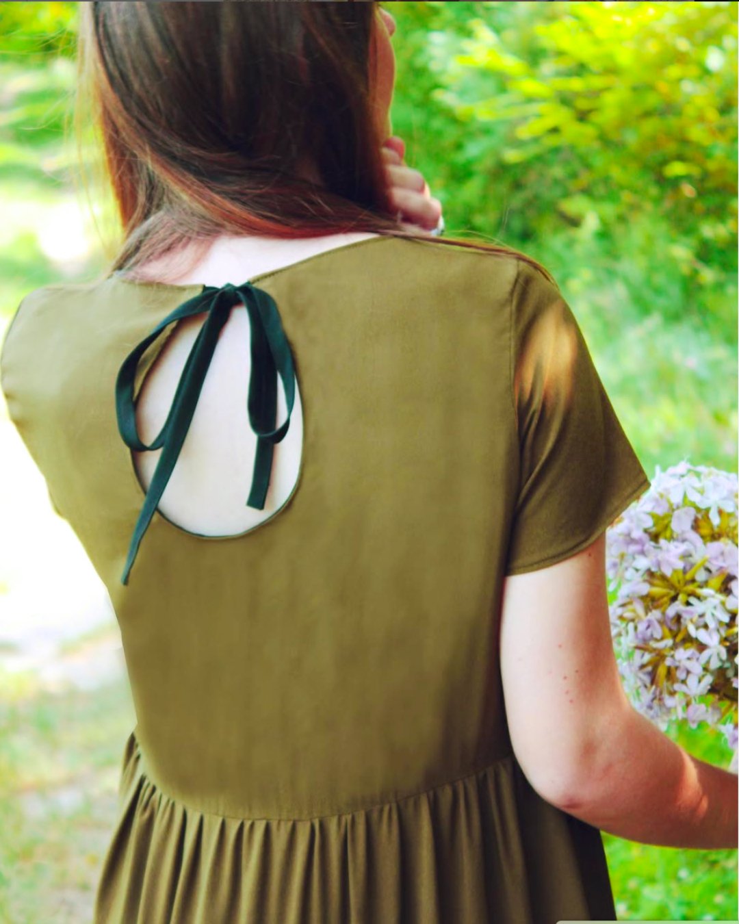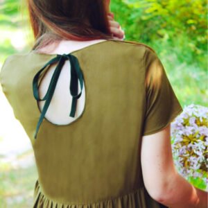 Le patron Avarice est un modèle de top ou de robe à manches courtes, froncée à la taille, proposé en deux variations de dos.