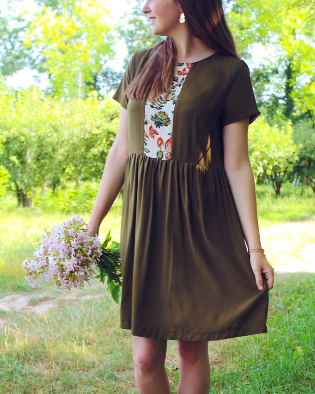 Il comprend un empiècement devant idéal pour valoriser vos chutes, une ligne légèrement évasée et une allure féminine et confortable. Le patron est adapté aux couturières débutantes curieuses (niveau V1) à intermédiaires (niveau V2).