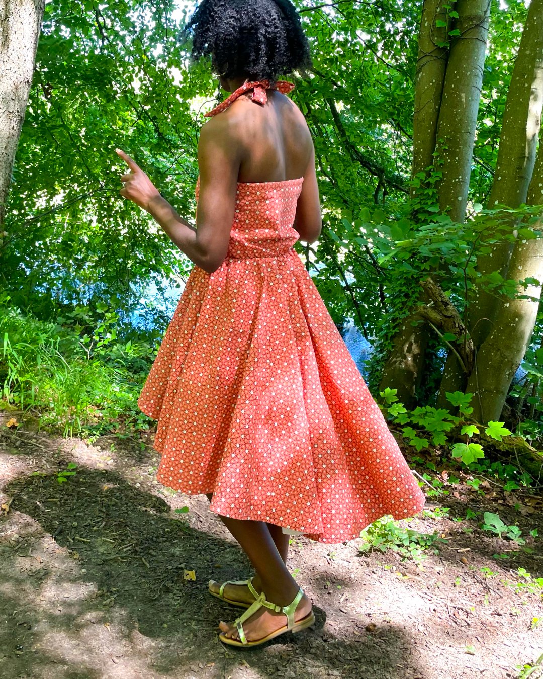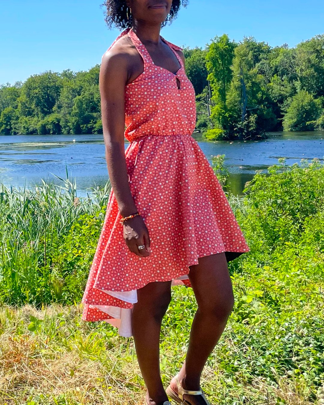 Le patron est accessible aux débutantes motivées. L’envers de la robe est pensé pour être aussi soigné que l’endroit grâce à une doublure intégrale du haut.