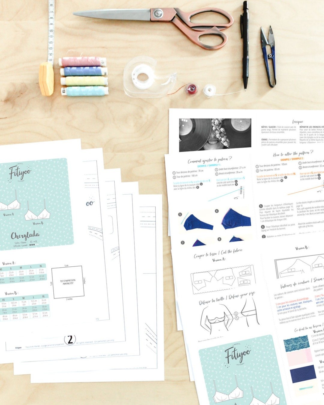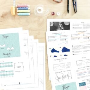 Le patron couvre les tailles XS à XL, soit de 80A à 100D/100E selon les indications du modèle. Il comprend un tutoriel détaillé illustré de photos et de textes, ce qui en fait un bon choix pour progresser en couture lingerie tout en réalisant une pièce technique et valorisante. La présence de deux versions, ainsi que l’option de bonnets doublés, permet d’adapter le rendu final selon ses envies de style, de confort et de maintien.