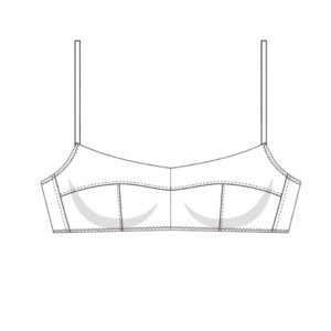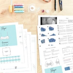 À noter également : si un élastique plus large que 1 cm est utilisé, il est recommandé d’ajouter quelques millimètres sur le patron afin de conserver le bon volume du bonnet une fois cousu. Le patron PDF comprend une planche multi-tailles avec calques, ce qui facilite l’impression ciblée et améliore le confort d’utilisation. Ce modèle est particulièrement pertinent pour celles qui recherchent une lingerie cousue main avec du caractère, du maintien et une vraie valeur ajoutée esthétique, sans passer par des armatures.