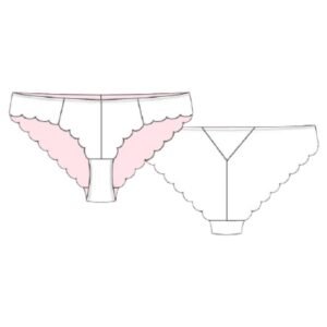 Moscow mule est un patron de culotte en dentelle au style raffiné, conçu pour mettre en valeur les festons et jouer avec les transparences tout en restant confortable au quotidien. Sa construction en plusieurs panneaux apporte un rendu travaillé et flatteur, tandis que sa coupe a été pensée pour convenir à différentes morphologies, du XS au 3XL. C’est un modèle idéal pour celles qui veulent coudre une lingerie délicate, séduisante et soignée, avec un vrai effet “belle pièce” même dans une version très simple.
