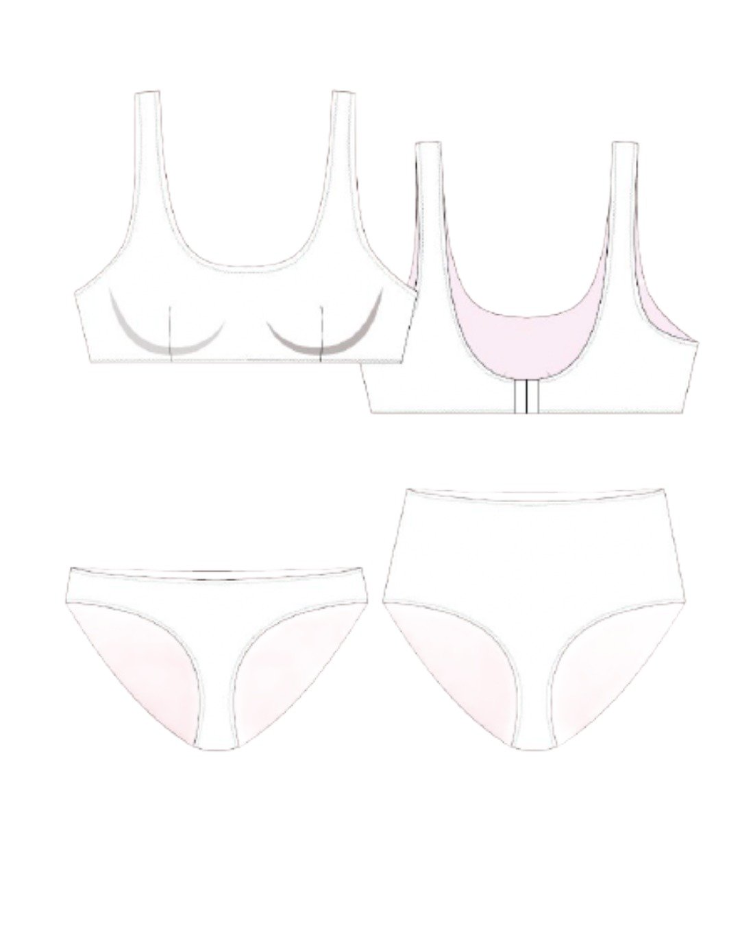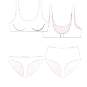 Pink lady est un patron de maillot de bain 2 pièces au style féminin et contemporain, composé d’une brassière et d’une culotte déclinable en deux hauteurs. Son design a été pensé pour offrir à la fois allure, maintien et confort, avec une brassière qui reste bien en place et une culotte que l’on peut adapter selon ses envies de couvrance. C’est un modèle idéal pour se coudre un maillot de bain personnalisé, agréable à porter, valorisant et adapté aux moments passés à la plage comme à la piscine.