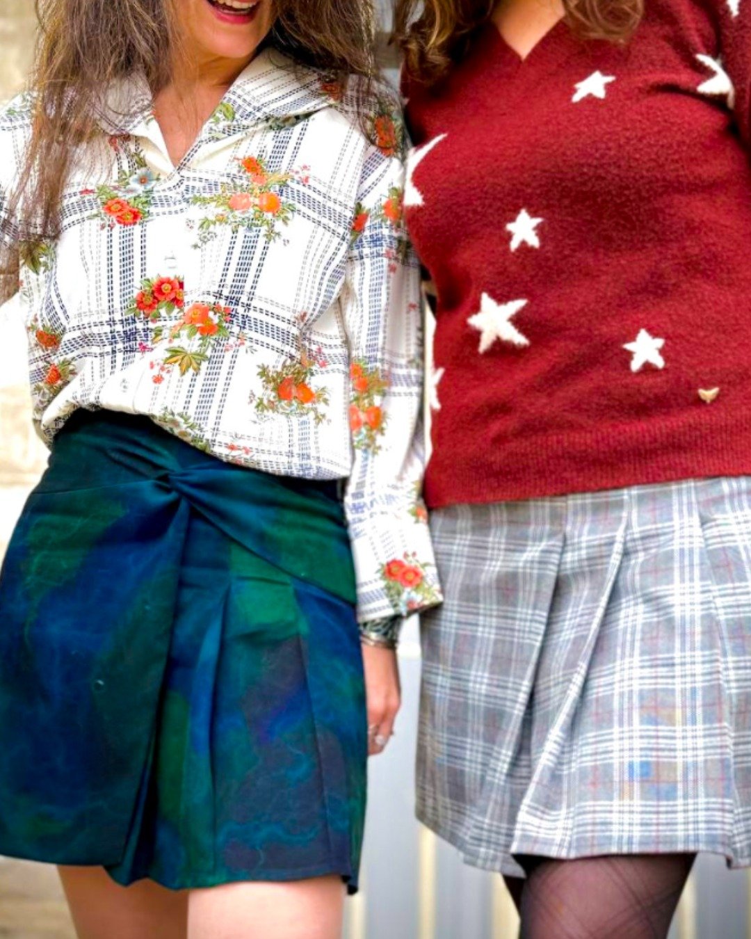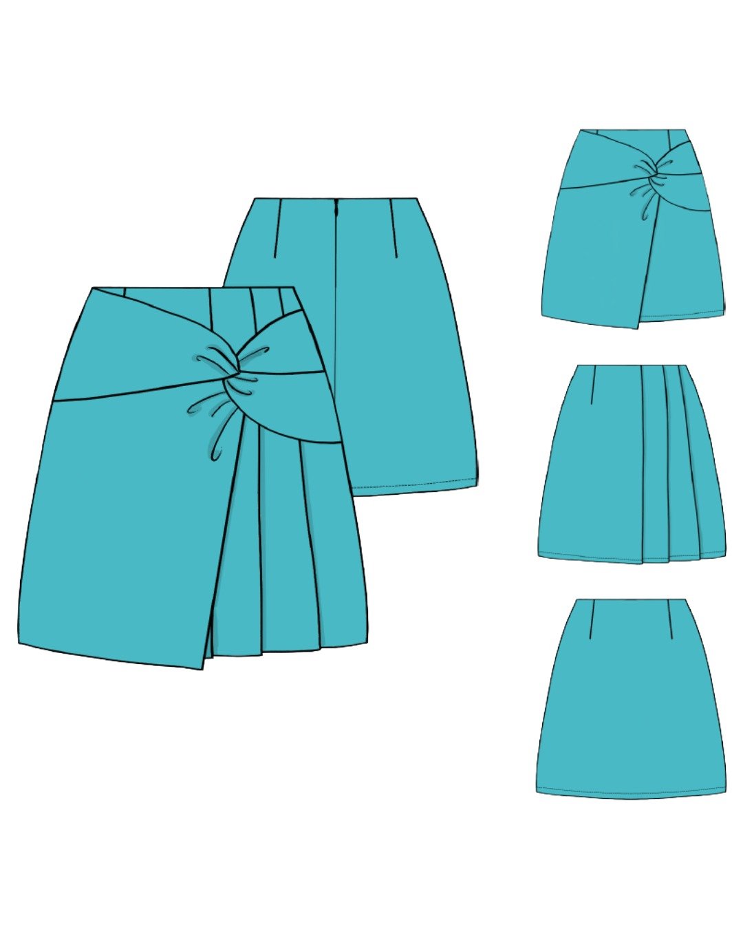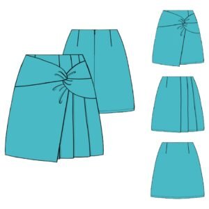 La jupe Amazilia est un patron polyvalent et féminin, pensé pour s’adapter à toutes les envies. Courte et structurée, elle revisite l’esprit college girl avec ses plis plats et son drapé asymétrique. Sa construction modulaire permet de jouer avec différents rendus : une version complète avec plis et drapé, une version plus douce sans plis, ou une version sobre uniquement plissée. Enfin, Amazilia sans plis ni drapé devient une jupe simple et élégante, parfaite comme base de garde-robe — ou même comme toile pour ajuster la taille avant la version finale.