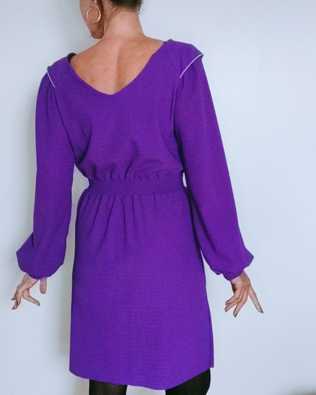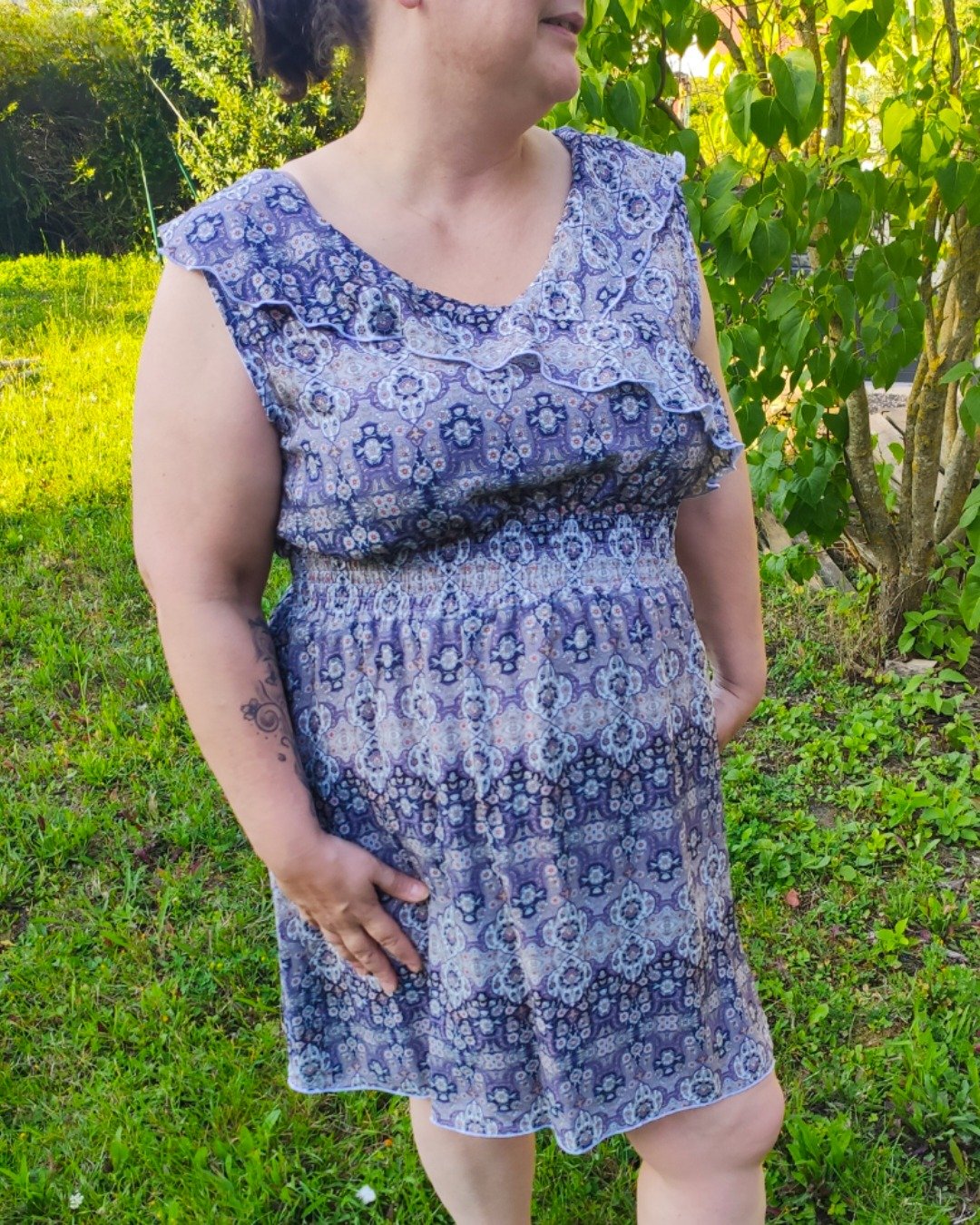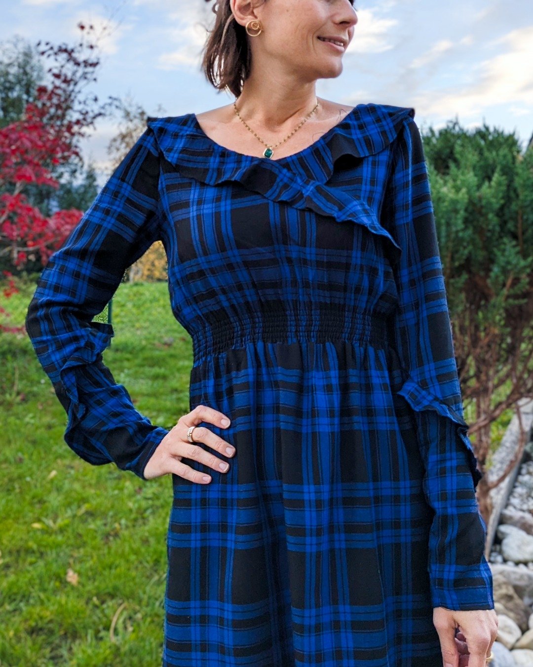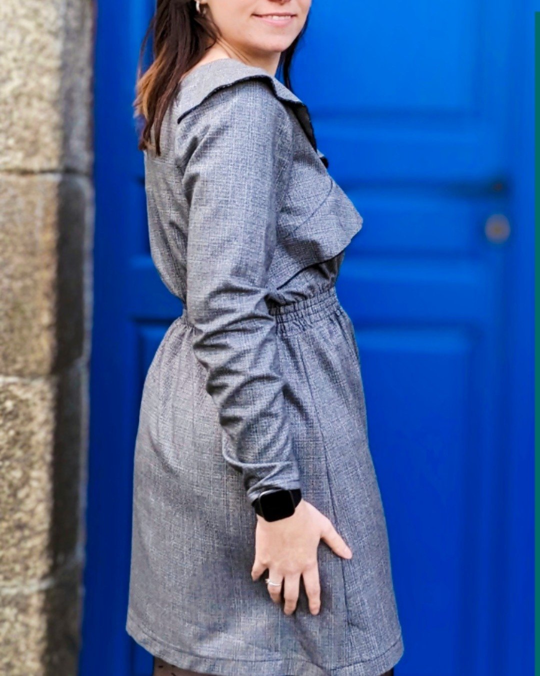 Le patron a été conçu pour une stature de 168 cm. Des lignes de raccourcissement ou d’allongement sont prévues pour ajuster le modèle. Niveau intermédiaire, il nécessite quelques techniques précises comme la couture des smocks ou la pose du biais, mais les explications accompagnées de vidéos vous guideront pas à pas.
