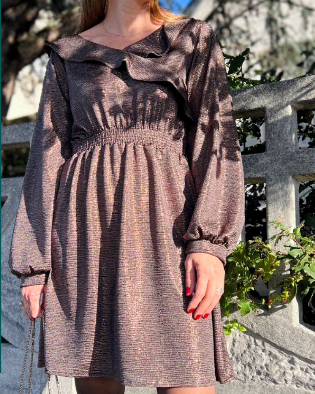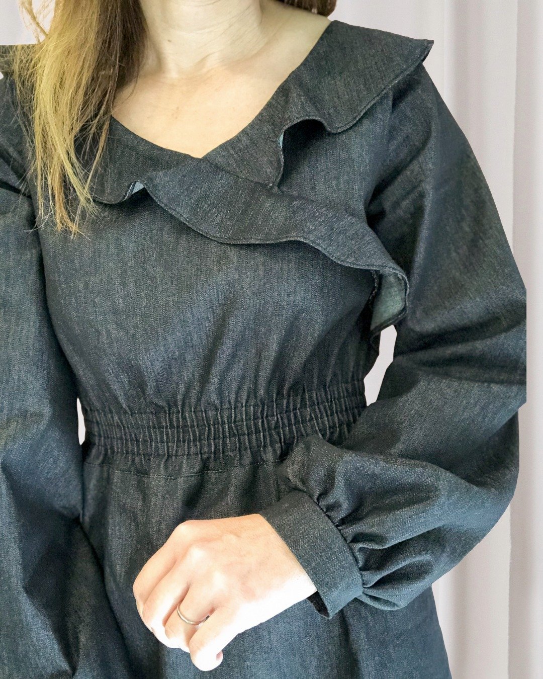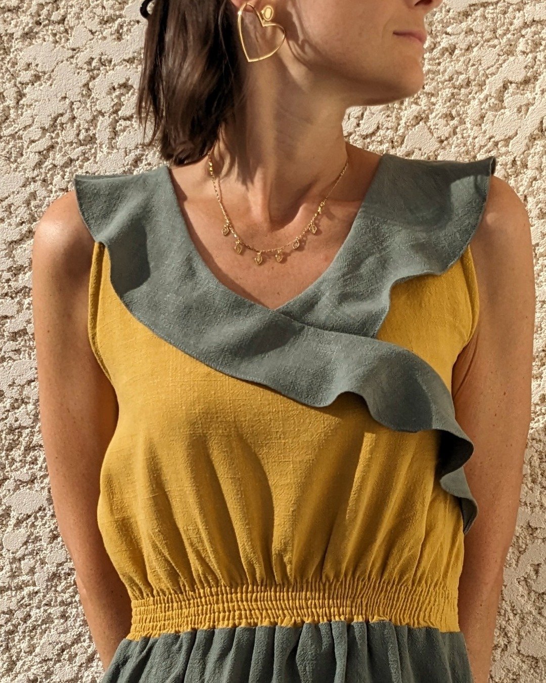 Robe Astrild est la parfaite robe d’été, pensée pour allier féminité et confort. Facile à porter au quotidien comme pour une sortie en ville, elle s’adapte aux styles en fonction du tissu choisi. Son encolure V devant et dos, ornée de longs volants qui prolongent la ligne des épaules, lui donne une silhouette aérienne et flatteuse. La taille est soulignée par une ceinture smockée qui épouse en douceur les formes du corps.