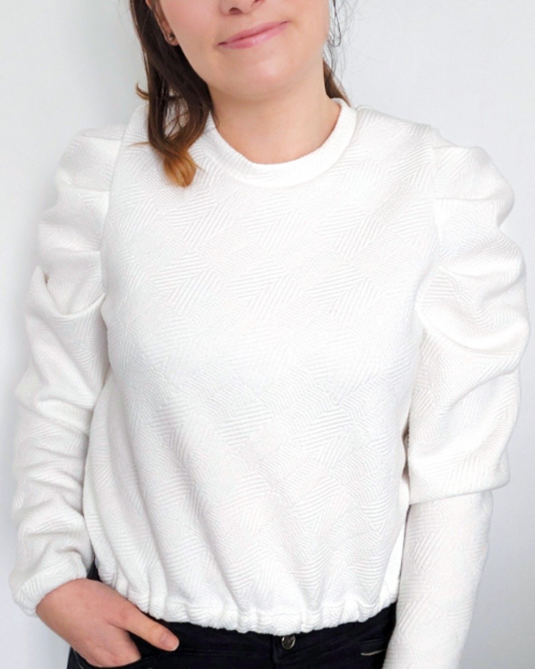 - Manches plissées avec finition au choix : ourlet, bord-côte ou coulisse élastiquée