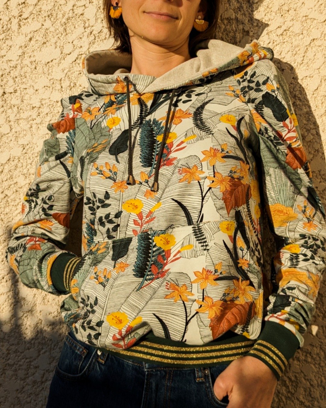 Calao est un sweat au charme résolument féminin, qui mêle douceur, style et adaptabilité. Conçu pour s’ajuster à votre quotidien, il permet de composer des versions variées : avec ou sans capuche, avec différentes finitions de manches et de bas, pour un rendu casual ou plus habillé selon les tissus choisis. Ses manches plissées sont l’élément signature du modèle et lui confèrent une silhouette travaillée et élégante.
