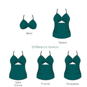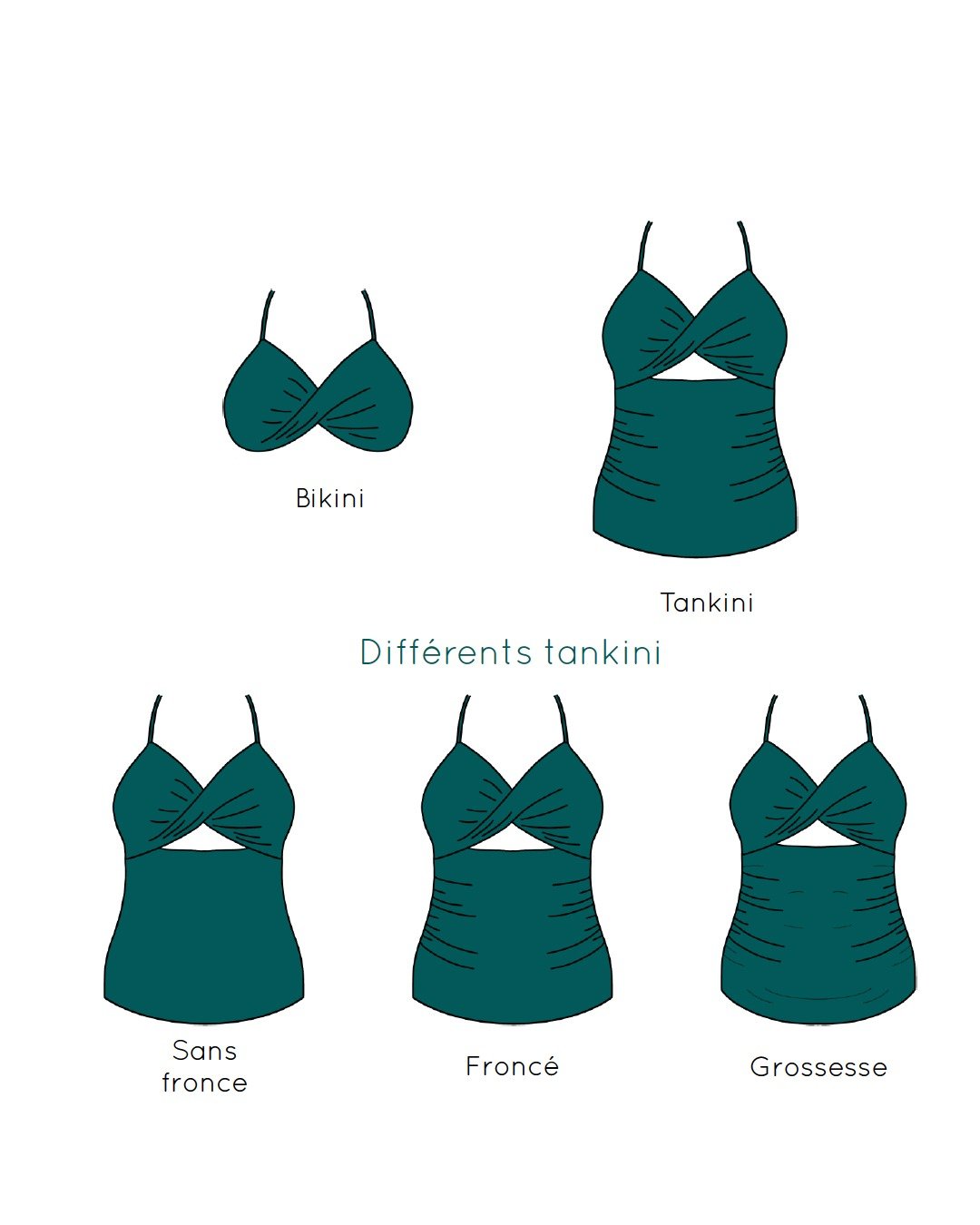 - Haut disponible en version tankini classique, sans fronce, grossesse ou bikini