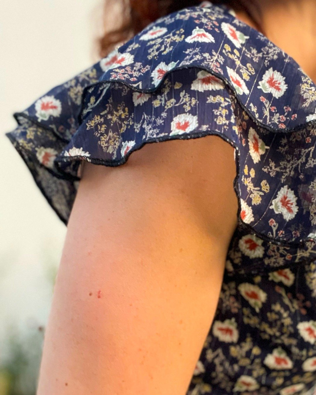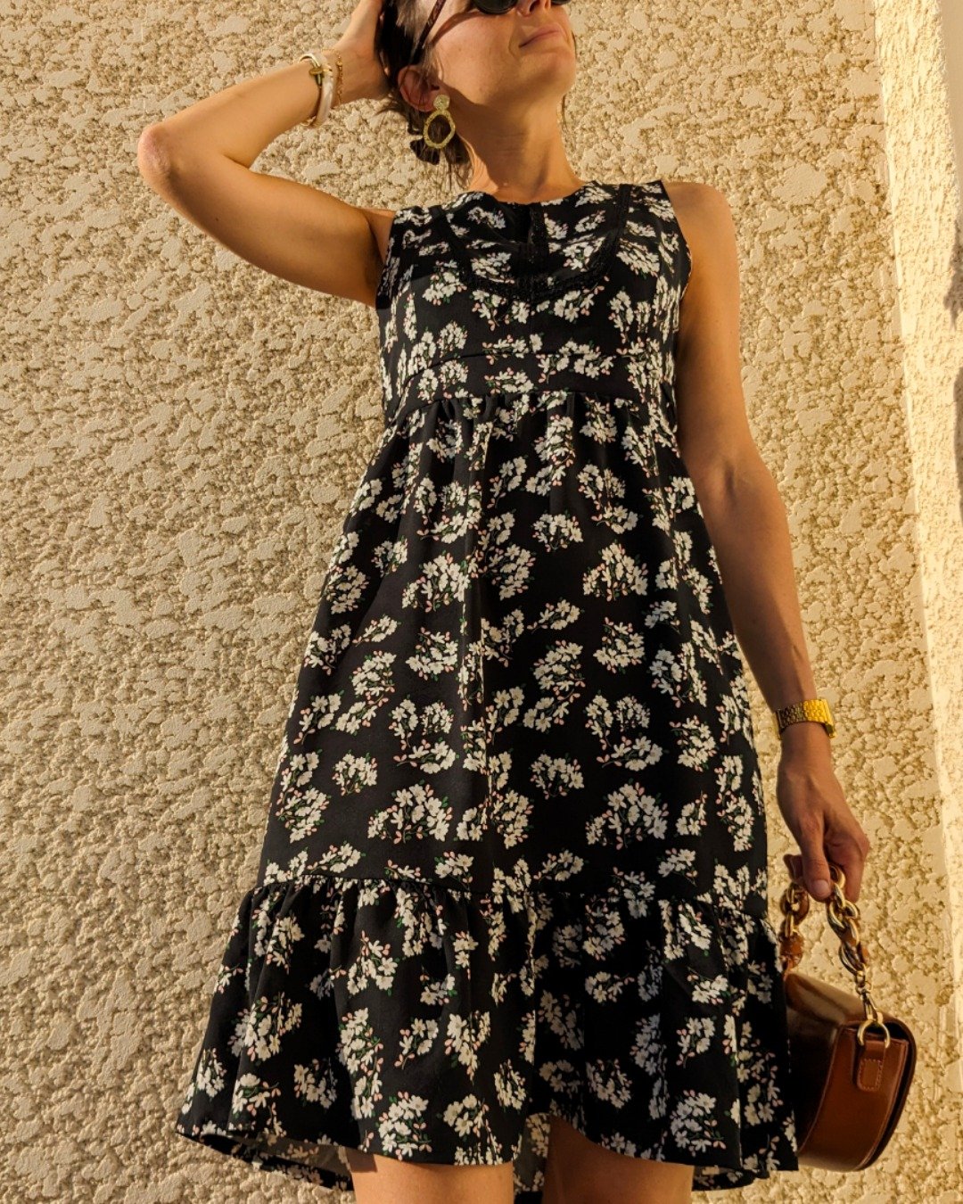 - Sans manches, avec mancherons volantés, manches courtes évasées ou doubles manches papillon