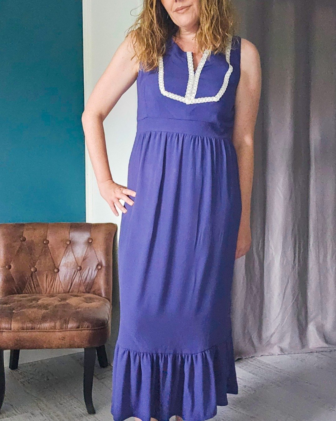 - Robe longue (sans manche) du 44 au 50 : 270 cm de tissu (laize 140 cm)