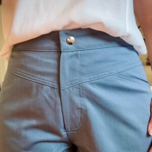Lyria taille plutôt grand : en cas de doute, il est conseillé de choisir la taille inférieure. Le patron est conçu pour une stature de 165 cm et peut nécessiter un ajustement. Une toile est vivement recommandée avant de couper dans votre tissu final. Niveau intermédiaire : idéal pour les couturières souhaitant perfectionner leurs finitions et apprendre le montage d’une braguette.