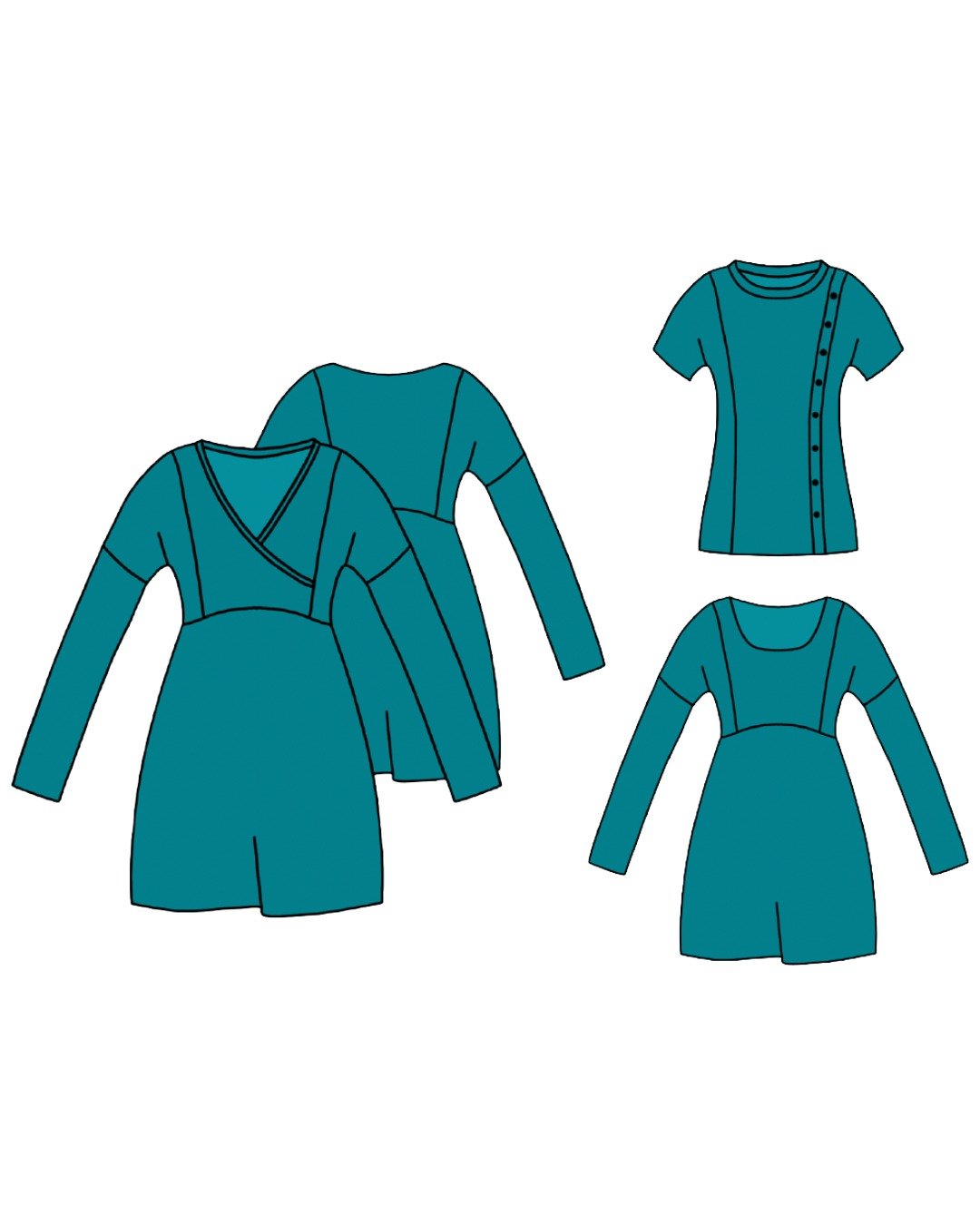 Mésange est un patron aussi élégant que confortable, pensé pour sublimer les silhouettes grâce à une coupe cintrée et des découpes bretelles modernes. Décliné en top ou en robe, il propose différentes variations pour s’adapter à votre style et à la saison : version manches longues ou courtes, avec encolure cache-cœur, col montant ou carrée. Sa jupe patineuse ajoute une touche de fluidité à la robe, tandis que le top revisite le t-shirt classique avec raffinement. Ce modèle est parfait pour mettre en valeur des mailles contrastées ou ton sur ton.