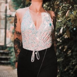 Watalibi est un maillot de bain une pièce féminin et raffiné, à la coupe cache-cœur et au dos joliment dégagé. Sa silhouette est soulignée par un lien à la taille, tandis que des fronces délicates apportent volume et fluidité à l’avant. Ce modèle se noue dans le cou grâce à des bretelles que vous pouvez réaliser en lycra ou avec un galon. Une version avec anneaux est également proposée pour une touche d’originalité. Pensé pour offrir un maintien optimal et une allure élégante, Watalibi est entièrement doublé et peut s’adapter à toutes les silhouettes du 32 au 52.