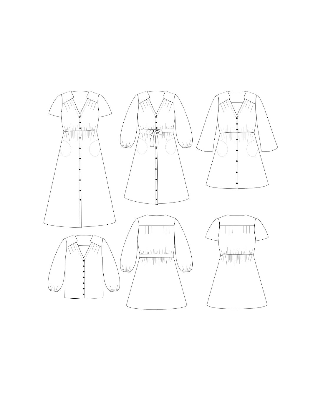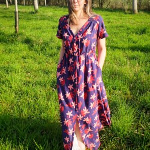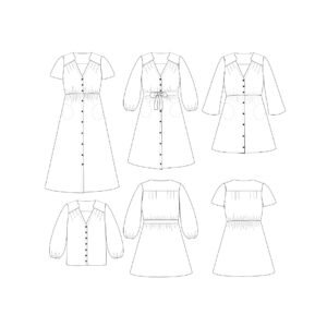 Chabada est un modèle caméléon, parfait pour exprimer votre créativité selon vos envies. En version robe ou chemisier, il se distingue par une encolure en V légèrement décalée, des jeux de plis délicats à l’avant, ainsi que des finitions féminines. Vous pouvez choisir entre plusieurs longueurs et types de manches, avec ou sans ceinture. Une pièce aussi agréable à porter qu’à coudre !
