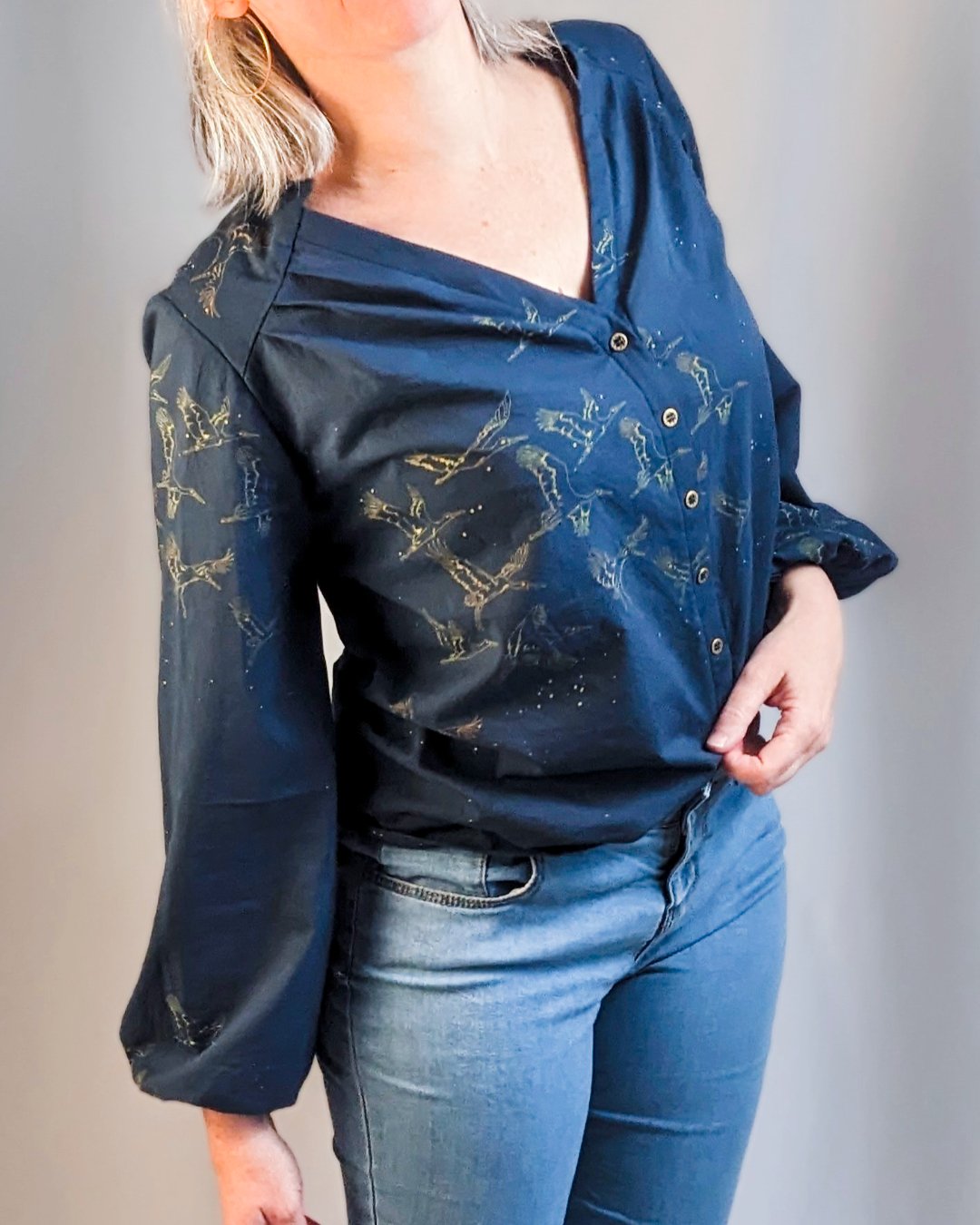 - Fermeture devant avec boutons décoratifs (ou fonctionnels)