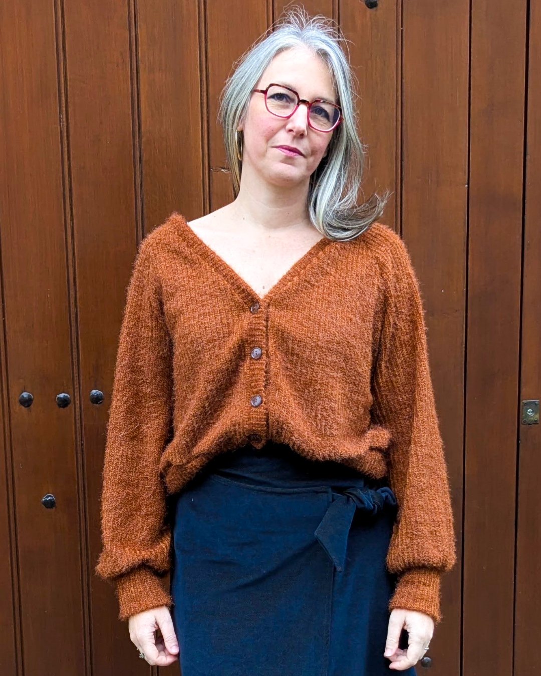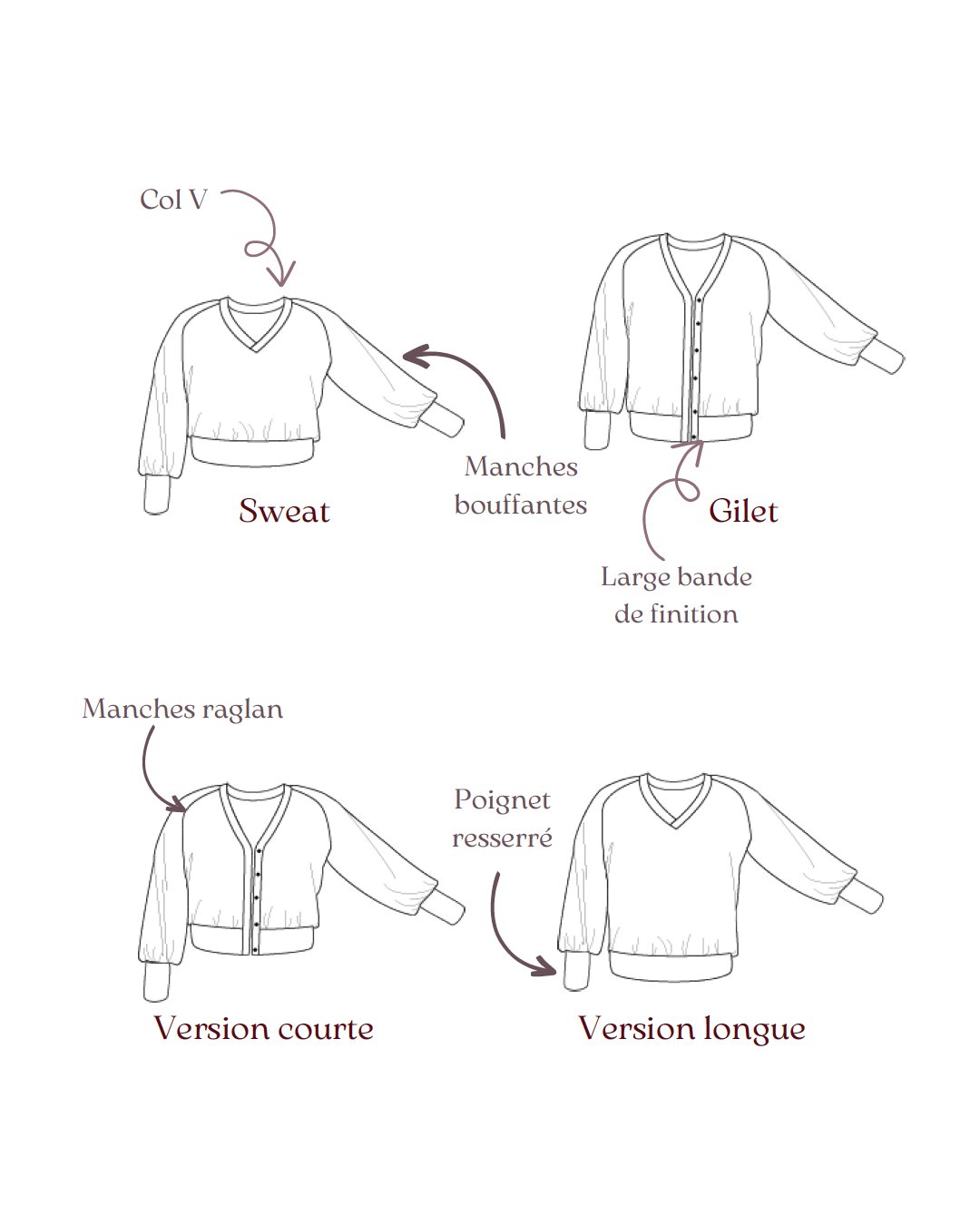 Chamaille est un modèle polyvalent et cosy qui se porte aussi bien en gilet boutonné qu’en sweat enveloppant. Avec ses manches raglan légèrement bouffantes, son col en V et ses bandes de finition confortables, il conjugue douceur et allure décontractée. Que vous choisissiez la version courte ou longue, ce vêtement ample est idéal pour les journées fraîches ou les superpositions stylées.