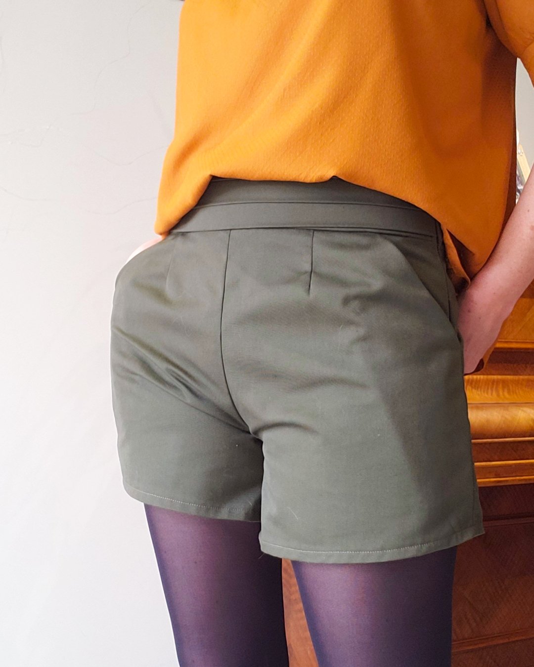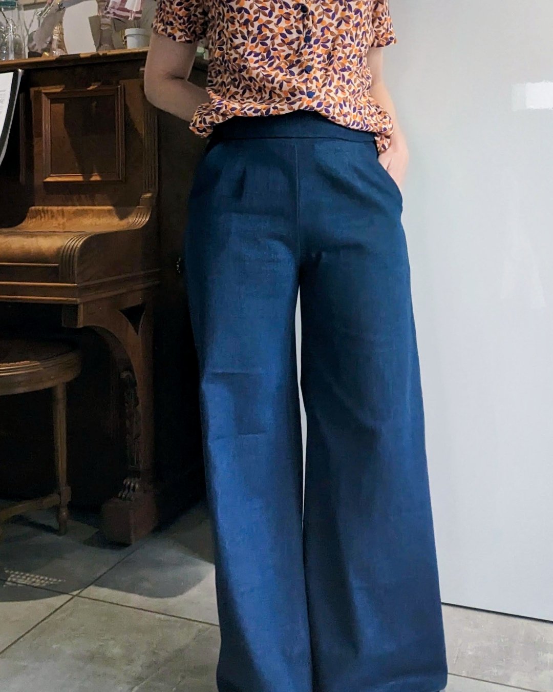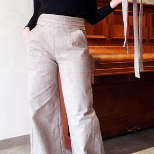 Chaplin est un patron de pantalon ou short taille haute, à jambes larges et coupe flatteuse, qui s’adapte à votre style grâce à ses options variées. Avec ses détails élégants comme les plis religieuses ou les bretelles amovibles, il évoque une allure rétro et structurée. Il se porte aussi bien l’été avec un tissu léger que l’hiver en version short avec collants et bottines.