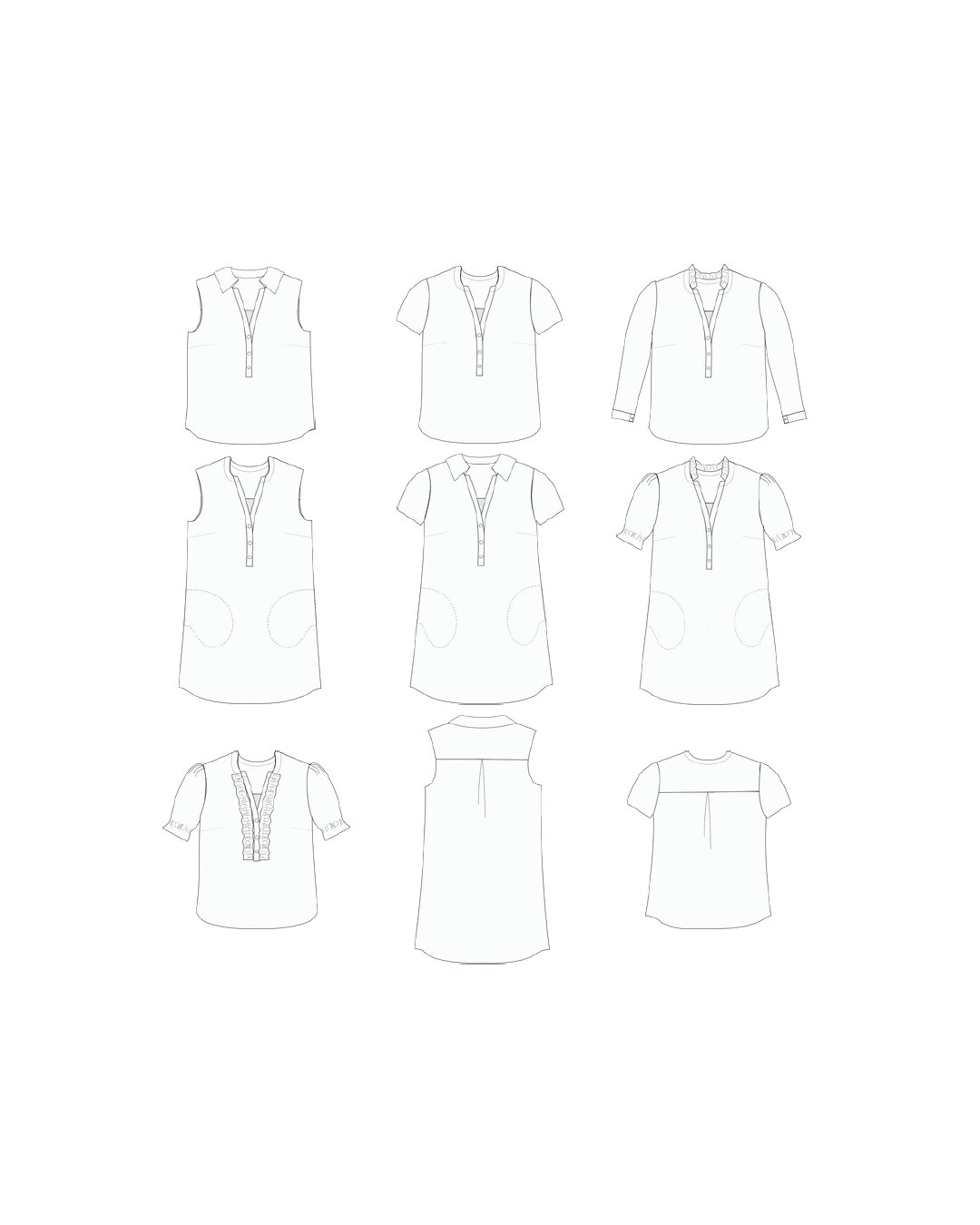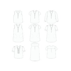 Charlie est une blouse ou une robe au style décontracté et raffiné, avec un esprit légèrement rétro. Son encolure ouverte façon col tunisien, ses multiples options de manches et de cols, et son pli creux dans le dos lui confèrent un joli volume et une belle liberté de mouvement. Parfaite pour composer une garde-robe versatile, Charlie permet de créer des pièces à la fois féminines, confortables et adaptées à toutes les saisons.