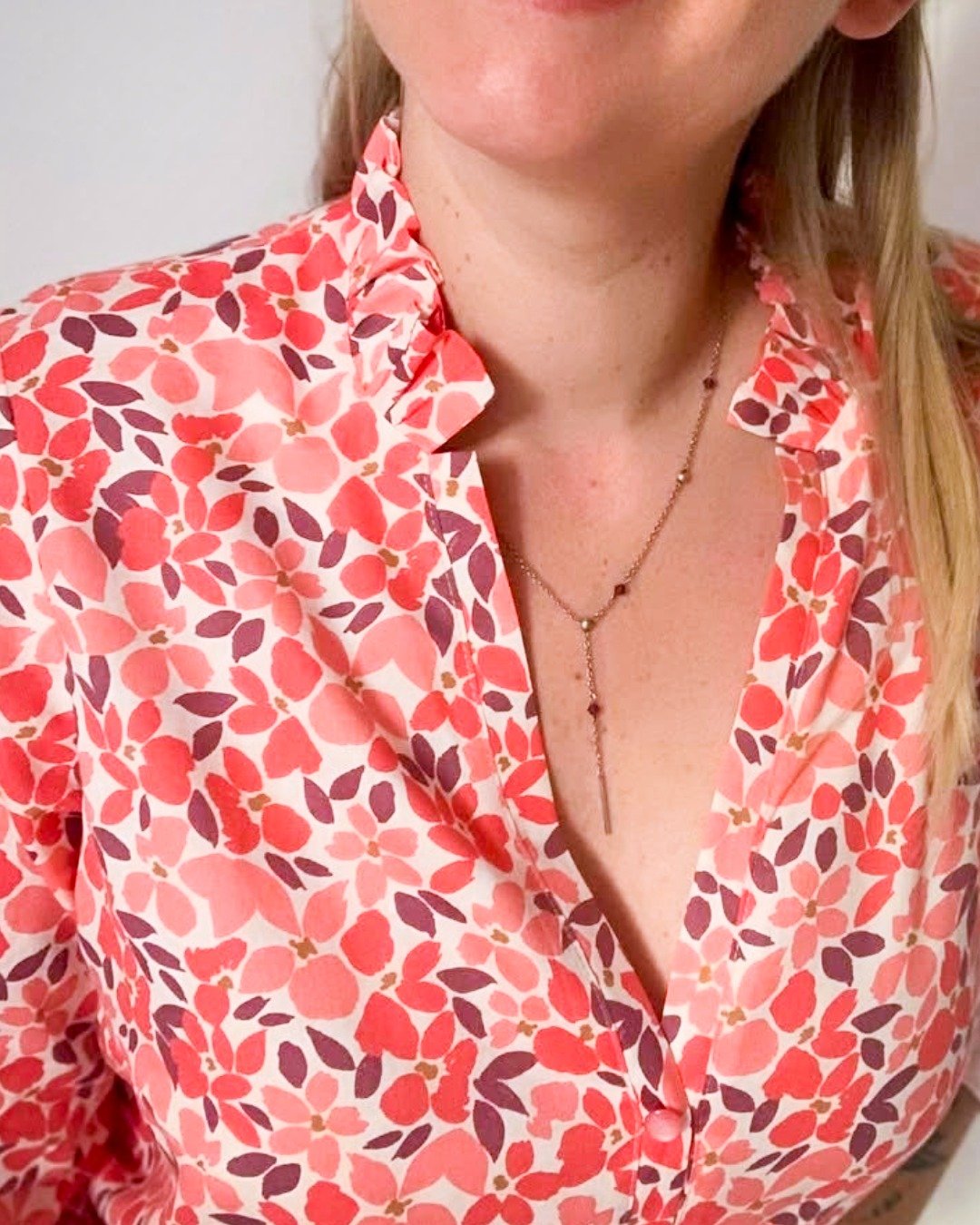 Charlie vous fera pratiquer la technique du « burrito », la pose de patte de boutonnage et la couture de cols et manches variés. Idéal pour les couturières cherchant à enrichir leur expérience avec un modèle aux finitions soignées.