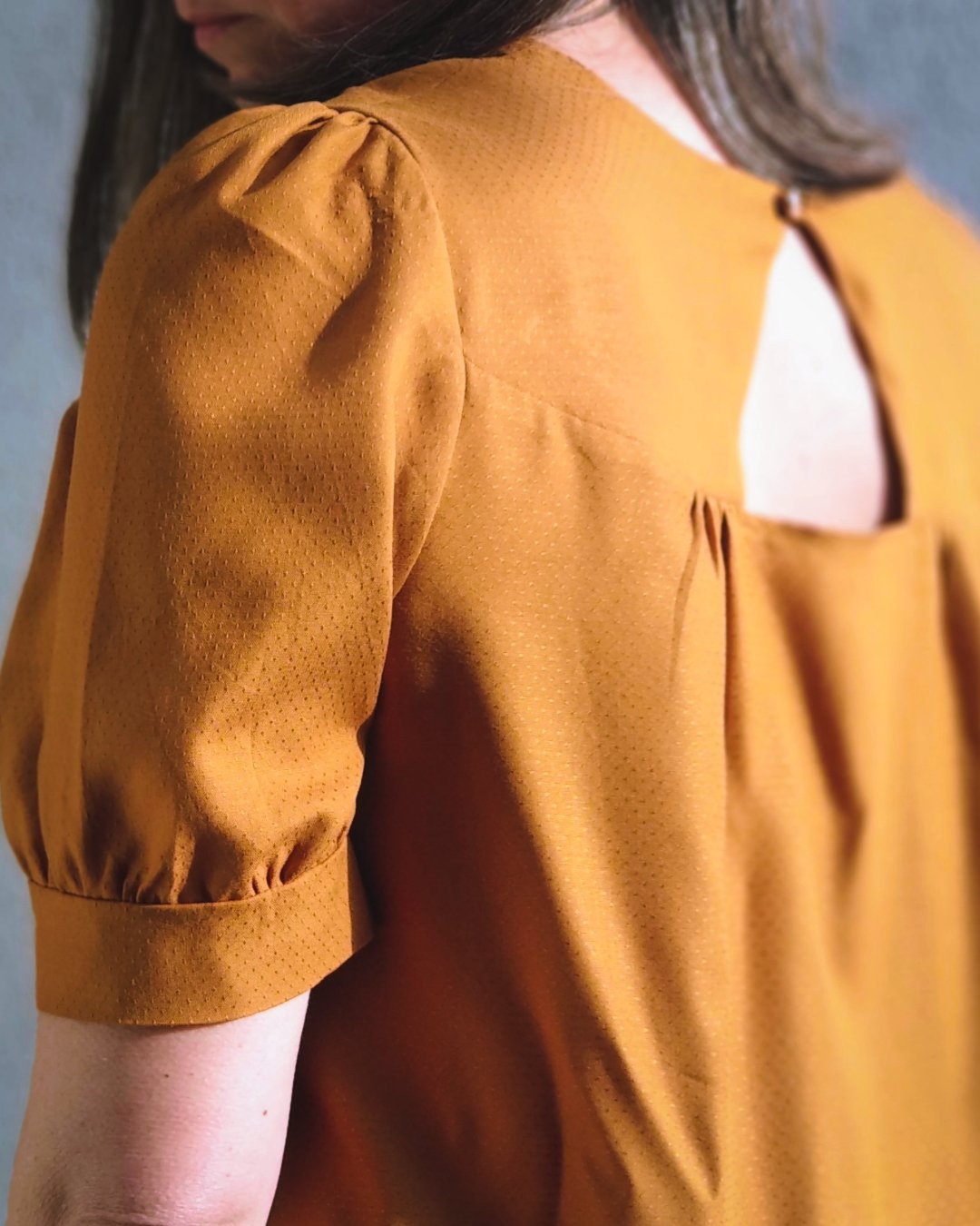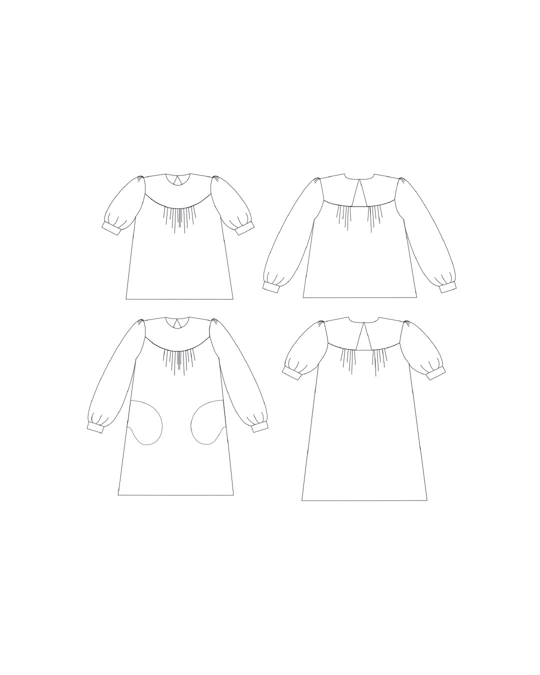 Châtaigne est un modèle raffiné à décliner en blouse ou en robe, selon vos envies. Son style mêle romantisme et confort avec des fronces délicates, des manches bouffantes et un plastron au galbe arrondi. Légèrement ouvert dans le dos, il se ferme grâce à une bride boutonnée pour un fini élégant et féminin. Idéal pour toutes les saisons, il se prête à des tenues du quotidien comme à des occasions plus habillées.
