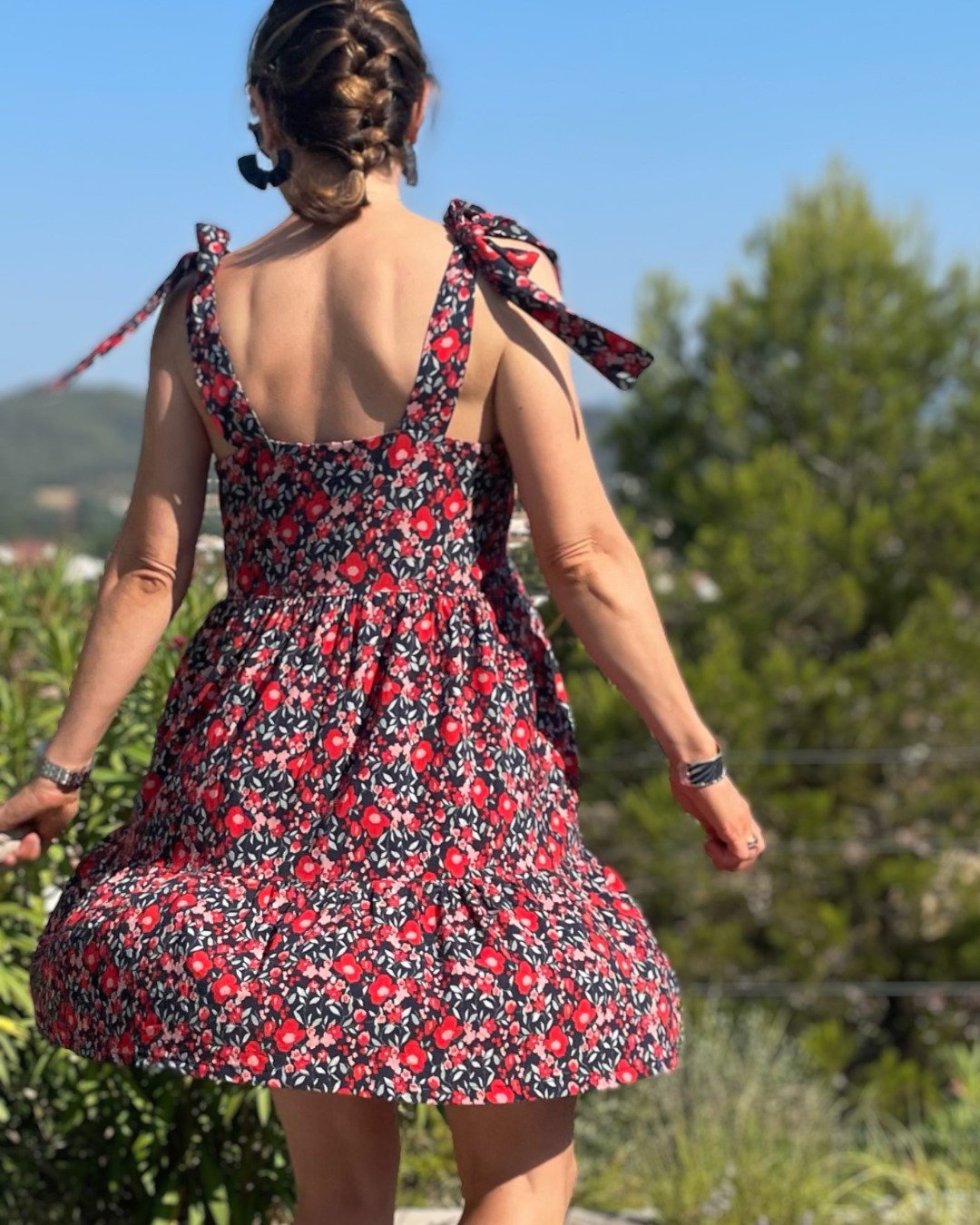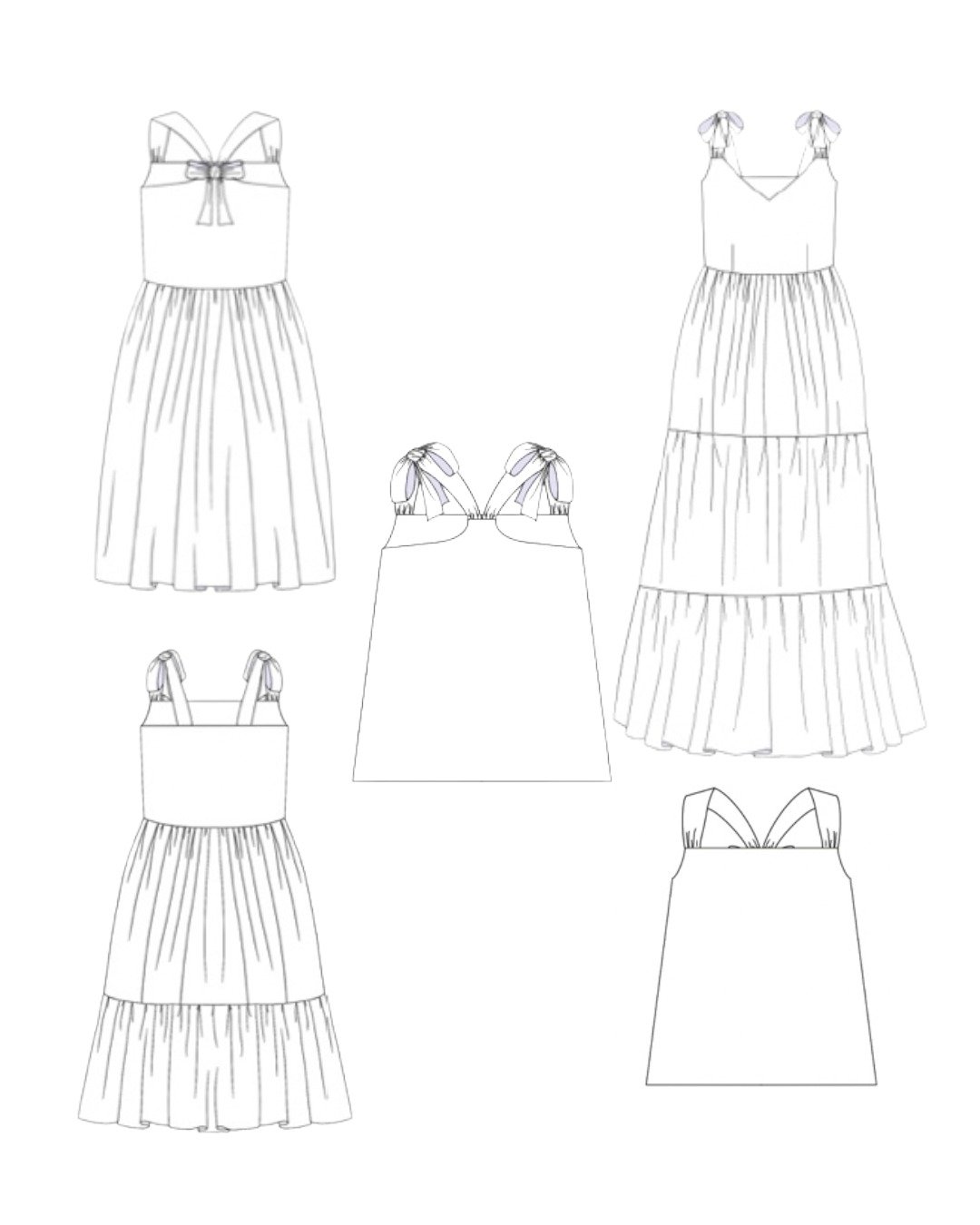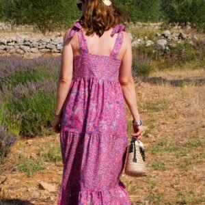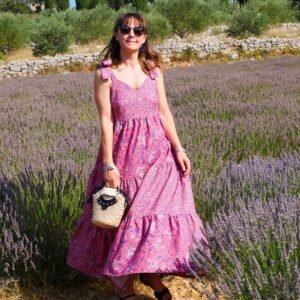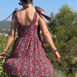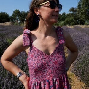 Avec son décolleté en V et ses bretelles à nouer, Emmelina est un modèle estival pensé pour se porter tout l’été, en journée comme en soirée. Ce patron propose un haut structuré mais facile à vivre, associé au choix à une version top droite ou à une robe fluide, courte ou longue, avec un tombé léger et féminin. L’esprit du modèle repose sur un jeu de lignes nettes (décolleté en V, emmanchures) et sur des détails modulables (dos, bretelles, jupes et volants) qui permettent d’adapter la silhouette à votre style : minimaliste en top, romantique en robe à volants, ou plus épurée en jupe simple.