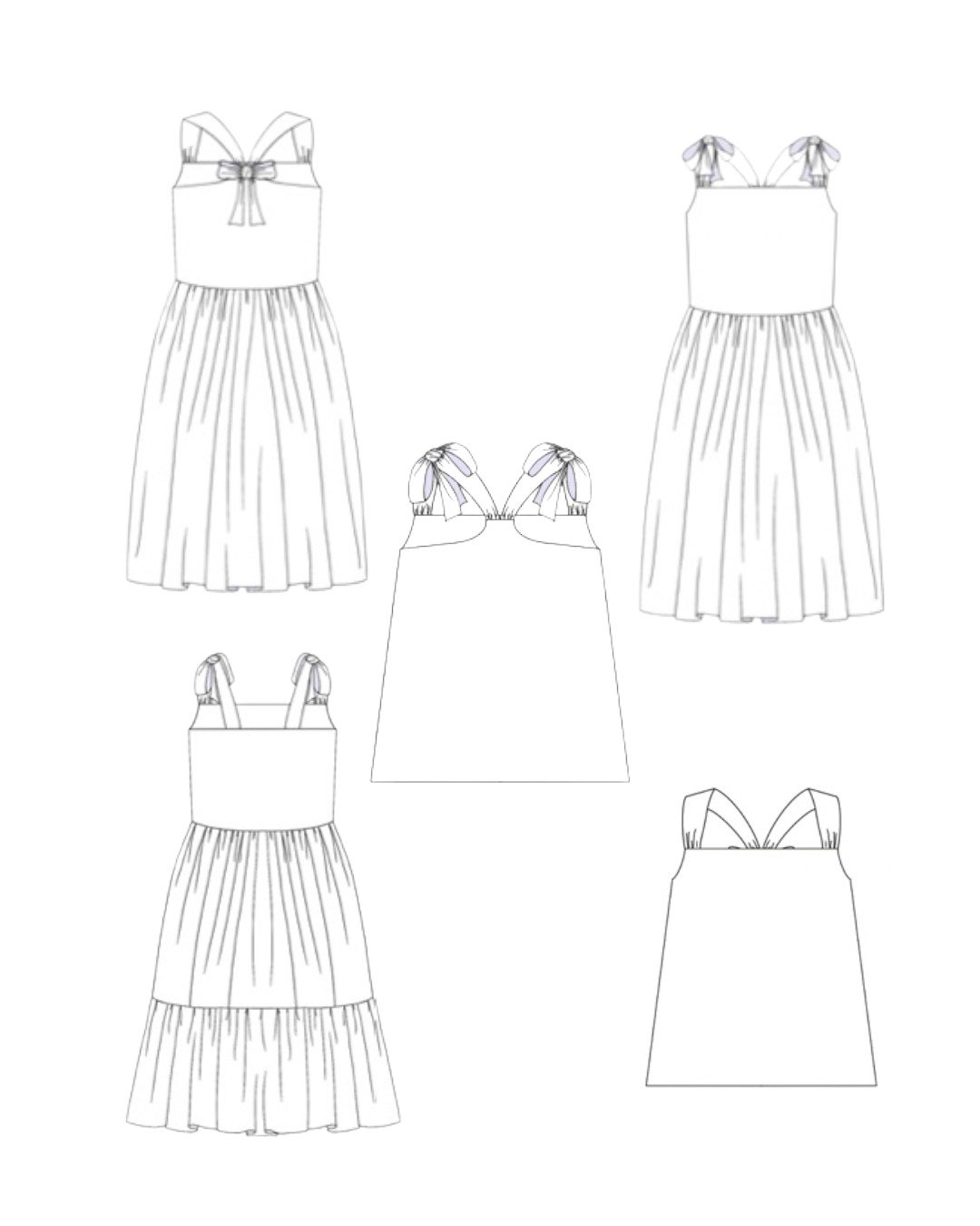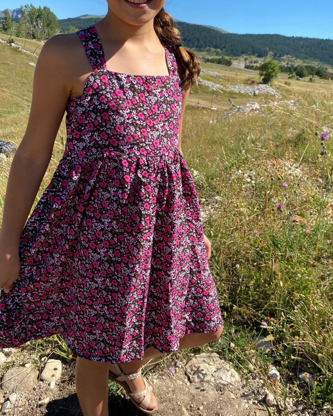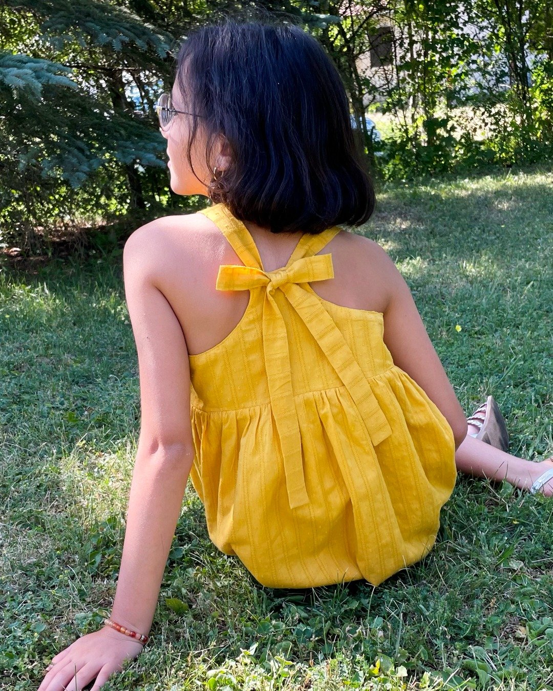 Emmelina est un patron estival de robe ou de top pour enfant, pensé pour accompagner les journées chaudes avec un style à la fois léger, confortable et plein de charme. Le modèle se distingue par ses bretelles à nouer, qui apportent une touche délicate et permettent un ajustement facile, que le nouage se fasse dans le dos ou sur les épaules. Conçu pour être modulable, ce vêtement se coud aussi bien en version top qu’en version robe, avec plusieurs options de dos (nageur ou droit) et, pour la robe, un choix de jupe simple ou jupe volantée. L’ensemble invite à jouer avec les tissus, les imprimés et les finitions, pour créer une pièce unique qui s’adapte aux envies et à la saison.