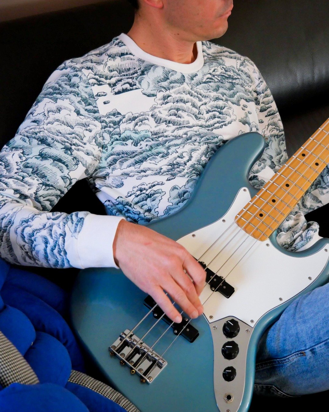 Les pièces col, poignets et bande de taille peuvent être coupées dans le tissu principal ou dans du bord-côte. Une recommandation spécifique est donnée pour les mailles effet tricot : il est conseillé de coudre une taille en dessous.