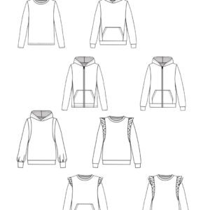 Avec Monarque, vous réalisez un sweat mixte pensé pour un vestiaire du quotidien, confortable et personnalisable à l’infini. Selon les options choisies, le modèle prend une allure sportswear épurée (col simple, buste long) ou une silhouette plus travaillée et technique (capuche, version zippée, empiècements, volants, mancherons…). Le patron est conçu pour offrir une grande liberté de style : en combinant les finitions proposées, vous pouvez obtenir une multitude de versions, du sweat minimaliste au hoodie plus structuré.