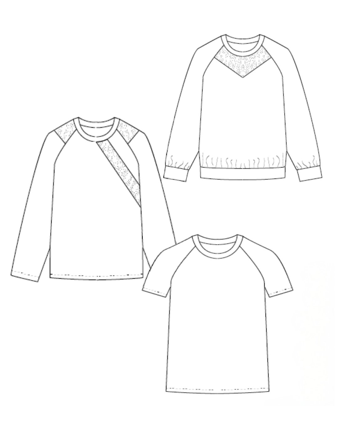 Le patron Top Actif est un modèle polyvalent à décliner selon vos envies en version t-shirt léger, pull douillet ou sweat moderne. Il présente des découpes originales (devant en pointe, empiècement haut), des manches avec ou sans découpes, et une finition bord-côte ou ourlet classique.
