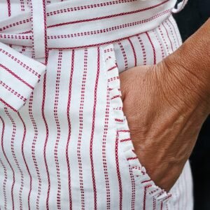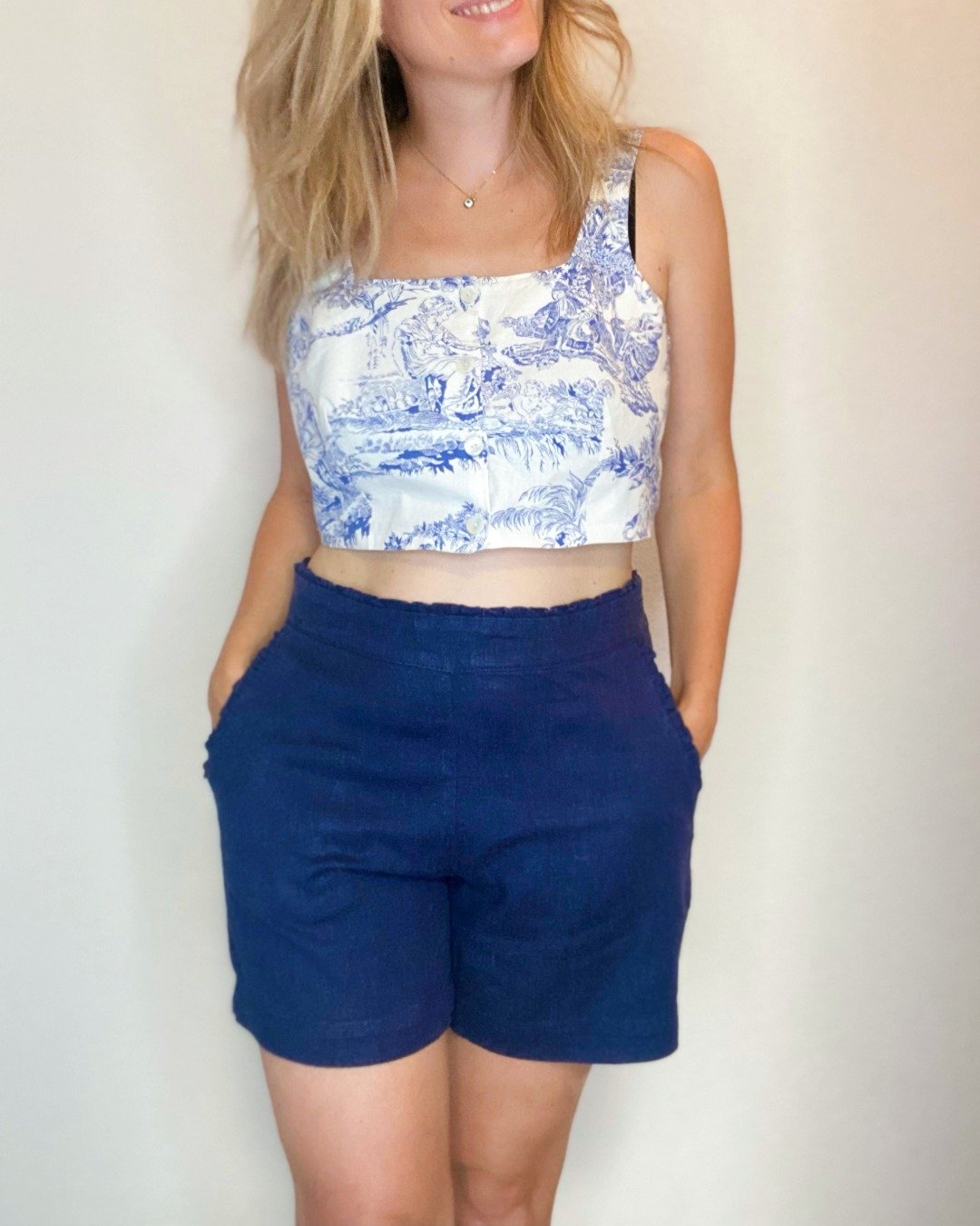 Le short peut être cousu dans une grande variété de tissus : sergé de coton, jean, viscose, jersey, jacquard, velours milleraies, drap de laine, wax… Pour plus de confort, privilégiez un tissu contenant un peu d’élasthanne.