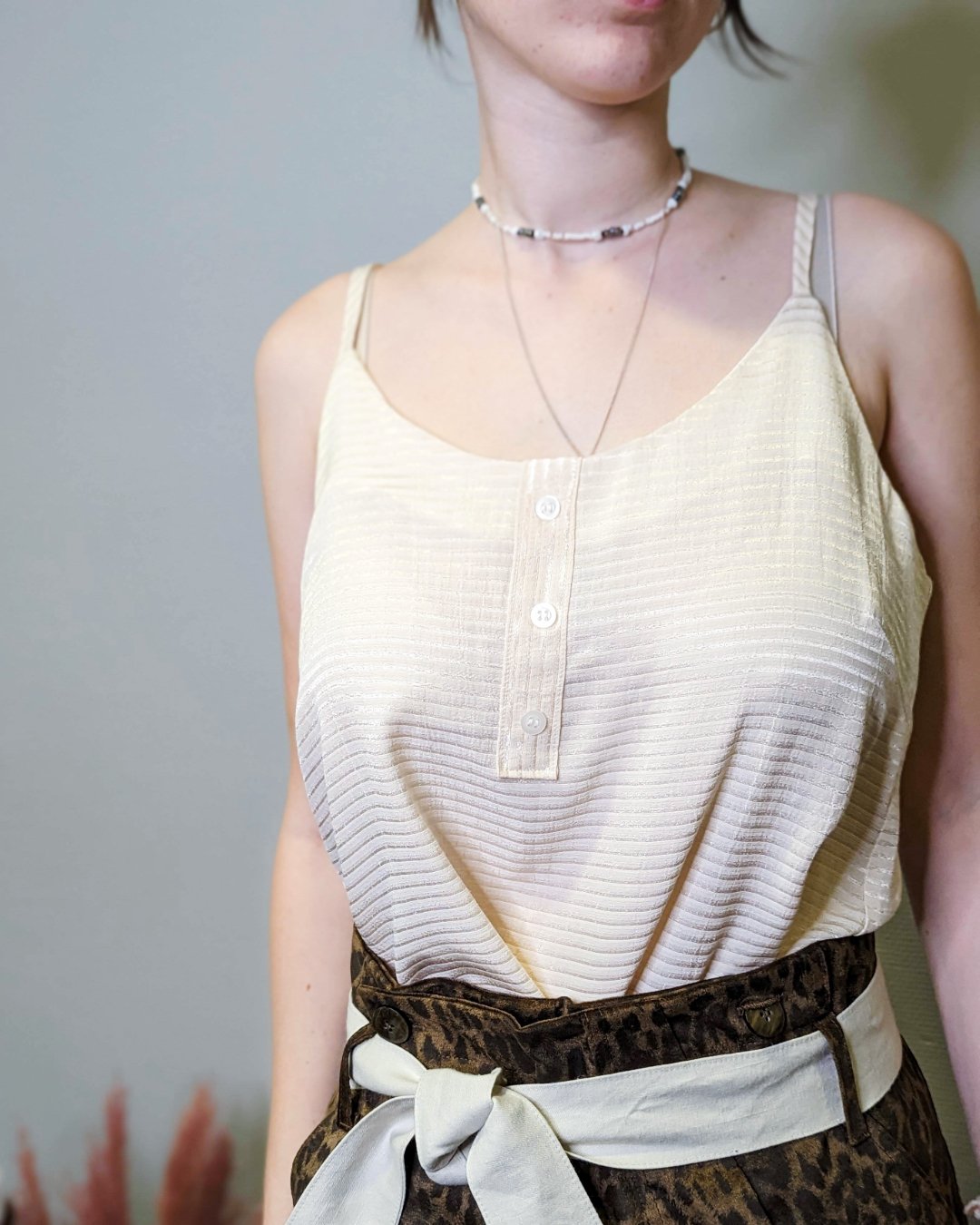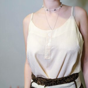 Belle est un indispensable de l’été, à la fois simple et raffiné. Sa coupe légèrement évasée, ses bretelles fines et son encolure douce en font un modèle élégant, facile à porter au quotidien comme pour des occasions plus décontractées. Il peut se décliner dans différents tissus pour varier les styles, du coton classique aux viscoses légères et fluides.