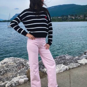Le Pantalon Bubblegum revisite avec brio le jean classique en proposant une silhouette contemporaine aux jambes larges et taille haute qui séduit par son allure à la fois décontractée et sophistiquée.