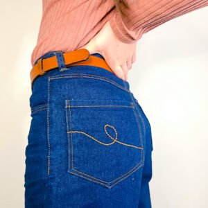 Ce patron a été conçu pour des tissus avec de la tenue, sans élasticité. Privilégiez le denim traditionnel, la gabardine ou le velours côtelé.