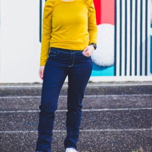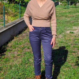 Douce est un pantalon féminin au style affirmé dit skinny, combinant élégance et confort. Avec ses détails travaillés, comme la découpe push-up dos, ses multiples poches et sa ceinture structurée, il s’inscrit parfaitement dans une garde-robe moderne. Il s’adapte à toutes les saisons selon le tissu choisi, et permet de créer une pièce forte, casual ou habillée, selon les finitions.