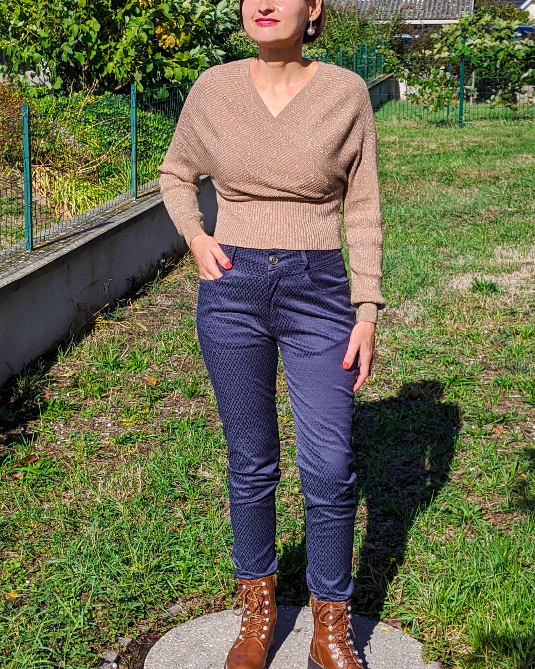 Optez pour un tissu ayant au minimum 30 % d’élasticité. Le modèle a été testé en velours stretch, gabardine stretch et jacquard stretch. Adaptez la matière à la saison et au rendu souhaité.