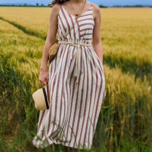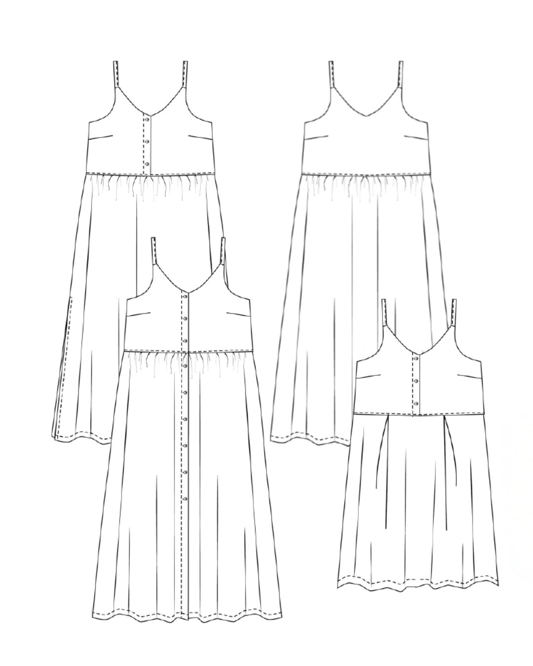 Découvrez le charme intemporel de la robe Georgia, une pièce maîtresse idéale pour toutes les occasions estivales. Cette robe allie élégance et décontraction, avec un corsage ajusté qui flatte la silhouette et une jupe évasée qui offre une liberté de mouvement incomparable. Les marges de couture sont incluses et mesurent 1 cm.