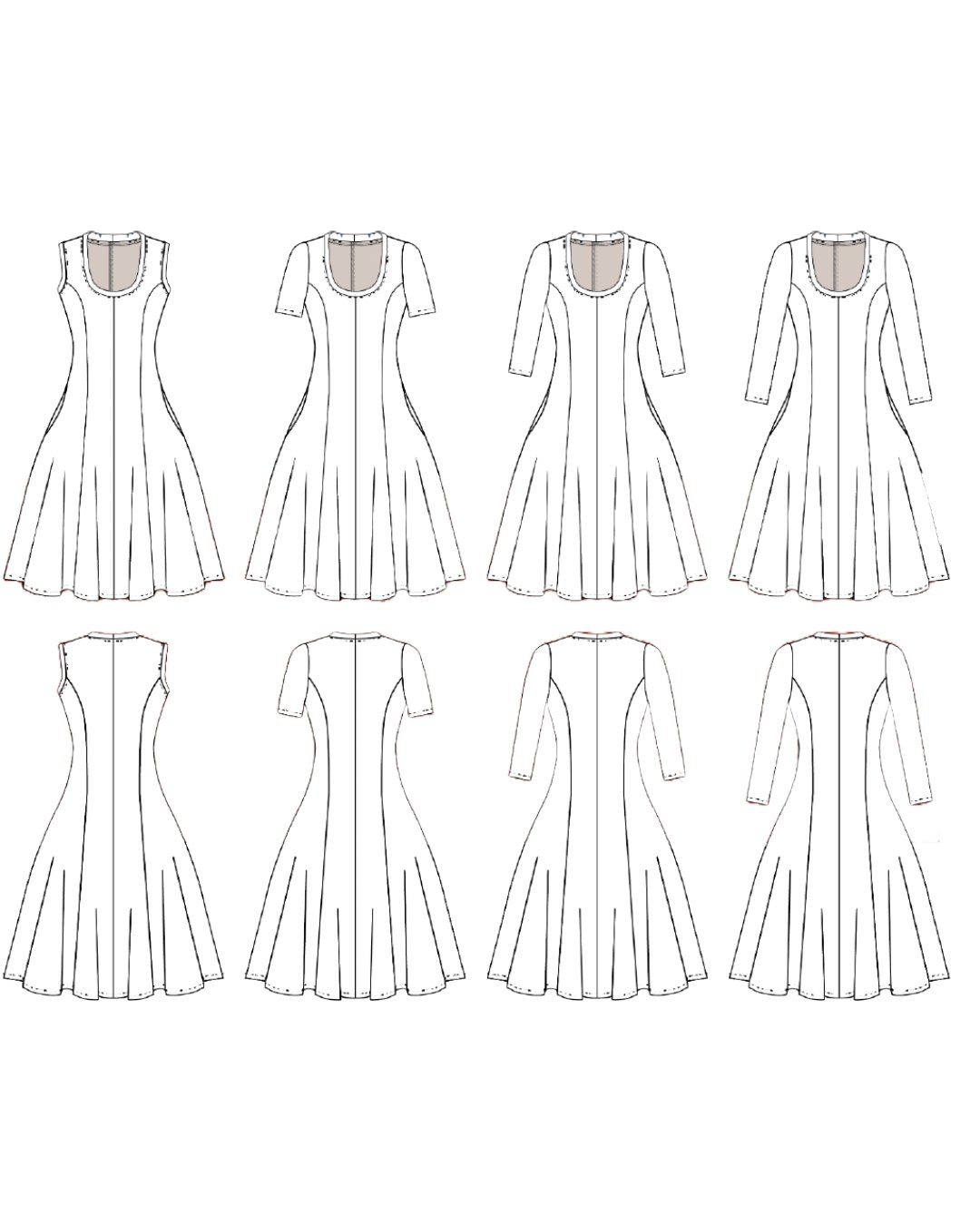 Liberté est une robe stretch courte (au genou), élégante et polyvalente, pensée pour souligner les courbes tout en offrant confort et aisance. Son haut ajusté aux découpes princesses met en valeur la silhouette, tandis que sa jupe en godets apporte un joli mouvement. L’encolure ronde légèrement dégagée et la finition soignée des bords offrent un montage accessible et agréable, parfait pour les couturiers débutants.