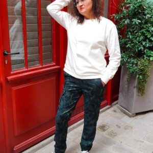 Le patron Telmon propose une construction technique enrichie (poches à soufflet, braguette zippée, surpiqûres visibles), tout en restant accessible grâce au livret pédagogique, détaillé pas à pas. À vous d’imaginer la version parfaite : city chic, baroudeuse ou minimaliste.